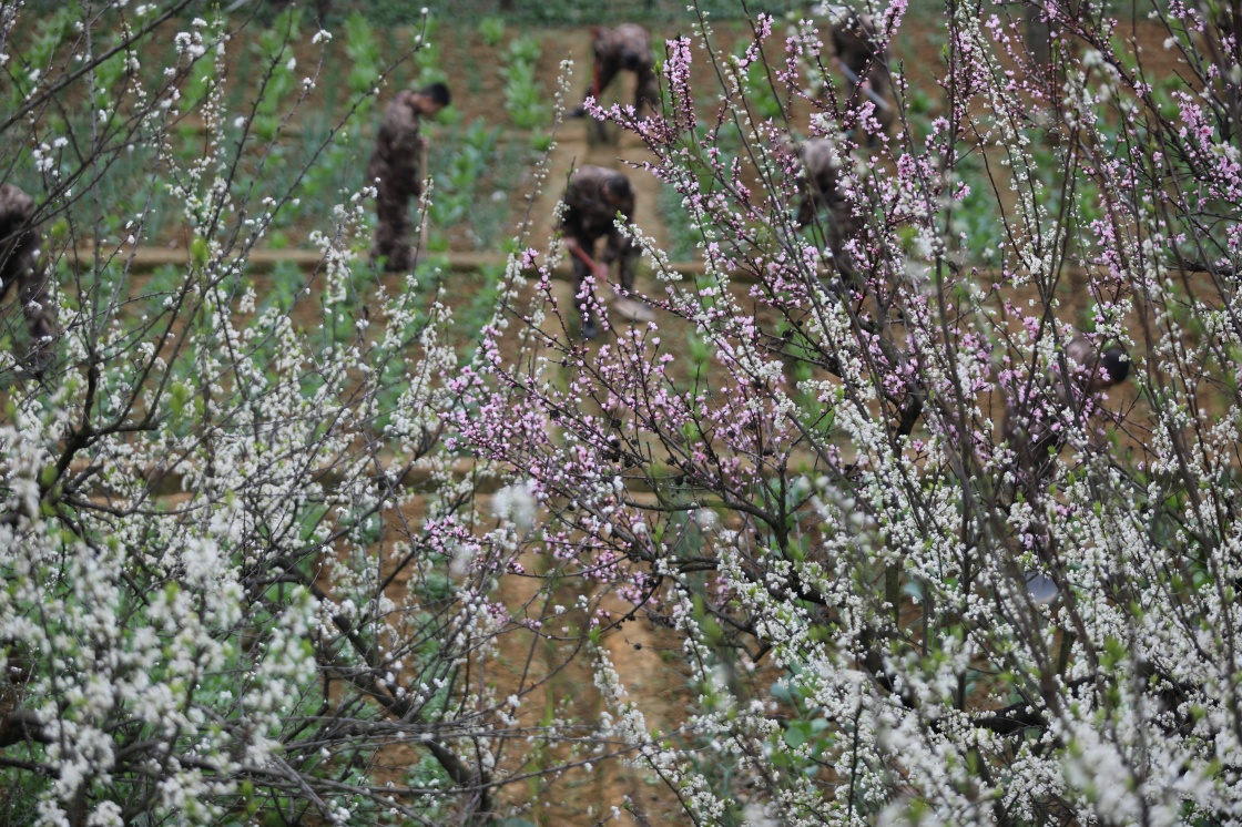 貴州省畢節市七星關區人武部組織民兵到對口幫扶的海子街鎮幫助村民干農活(2020年3月18日攝)。新華社發(王慶澤 攝)