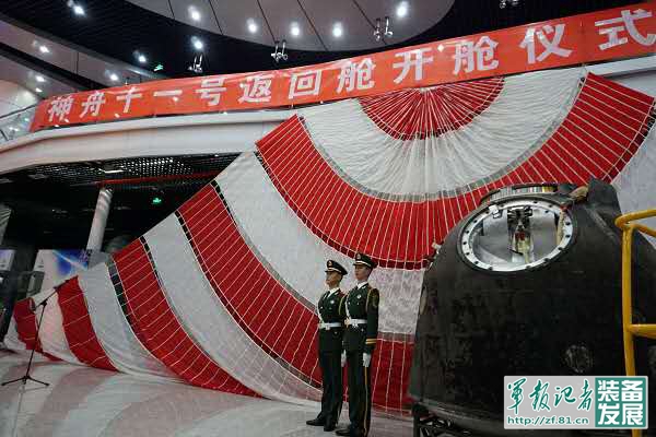 軍報記者北京11月22日電(楊欣、記者韓阜業)2016年11月22日下午,中國載人航天工程辦公室和中國航天科技集團公司在京舉行神舟十一號飛船返回艙開艙儀式,與研制單位和搭載單位代表一道,共同見證搭載物品出艙。