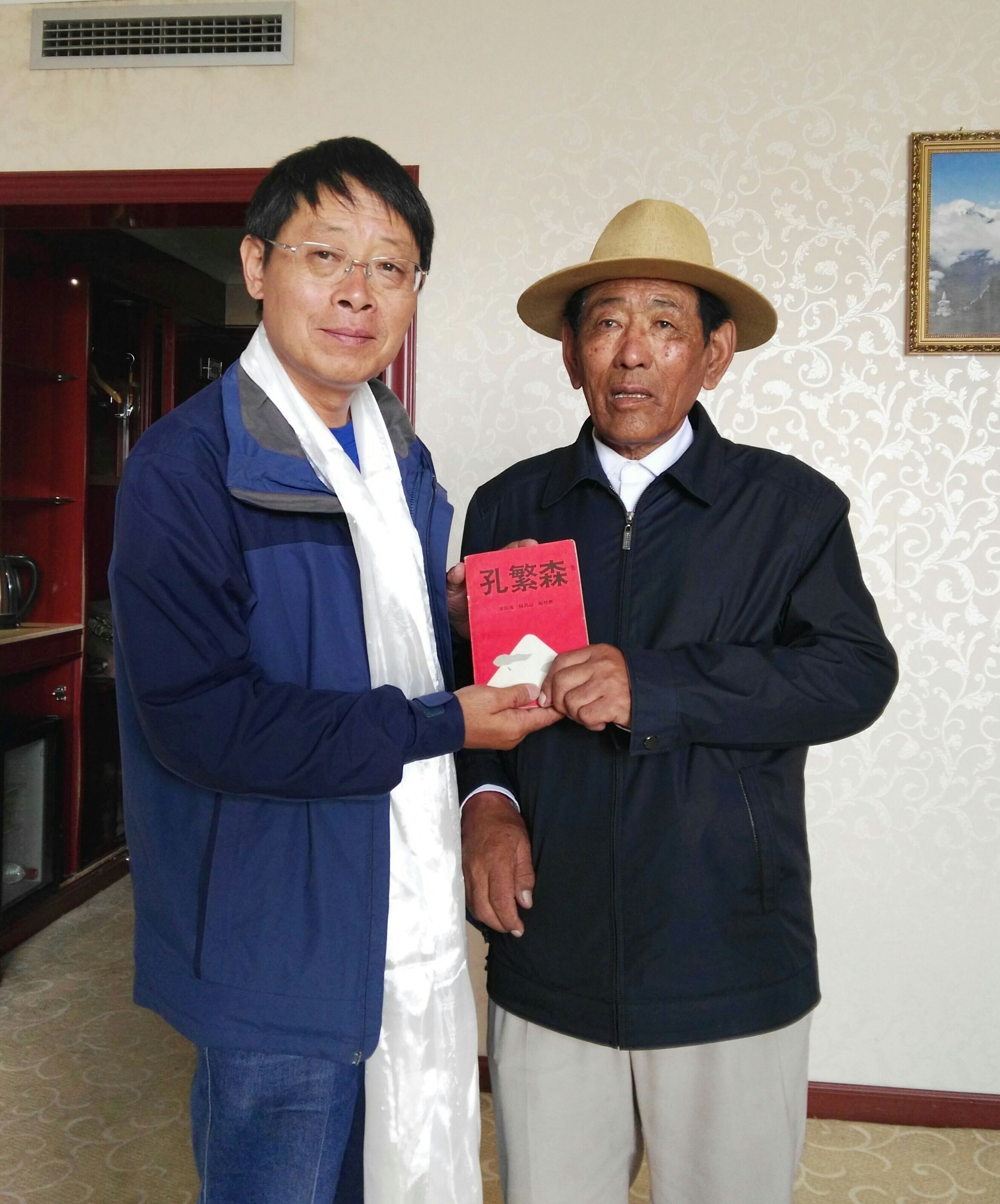 接受采訪時,班登群培主席專門帶來了一個鏡框和一本書—《孔繁森》。鏡框里鑲嵌著一張孔繁森的照片,這張照片是他從一本畫報上剪下來的,照片雖然有些模糊,但他仍將它掛在自己家里。
