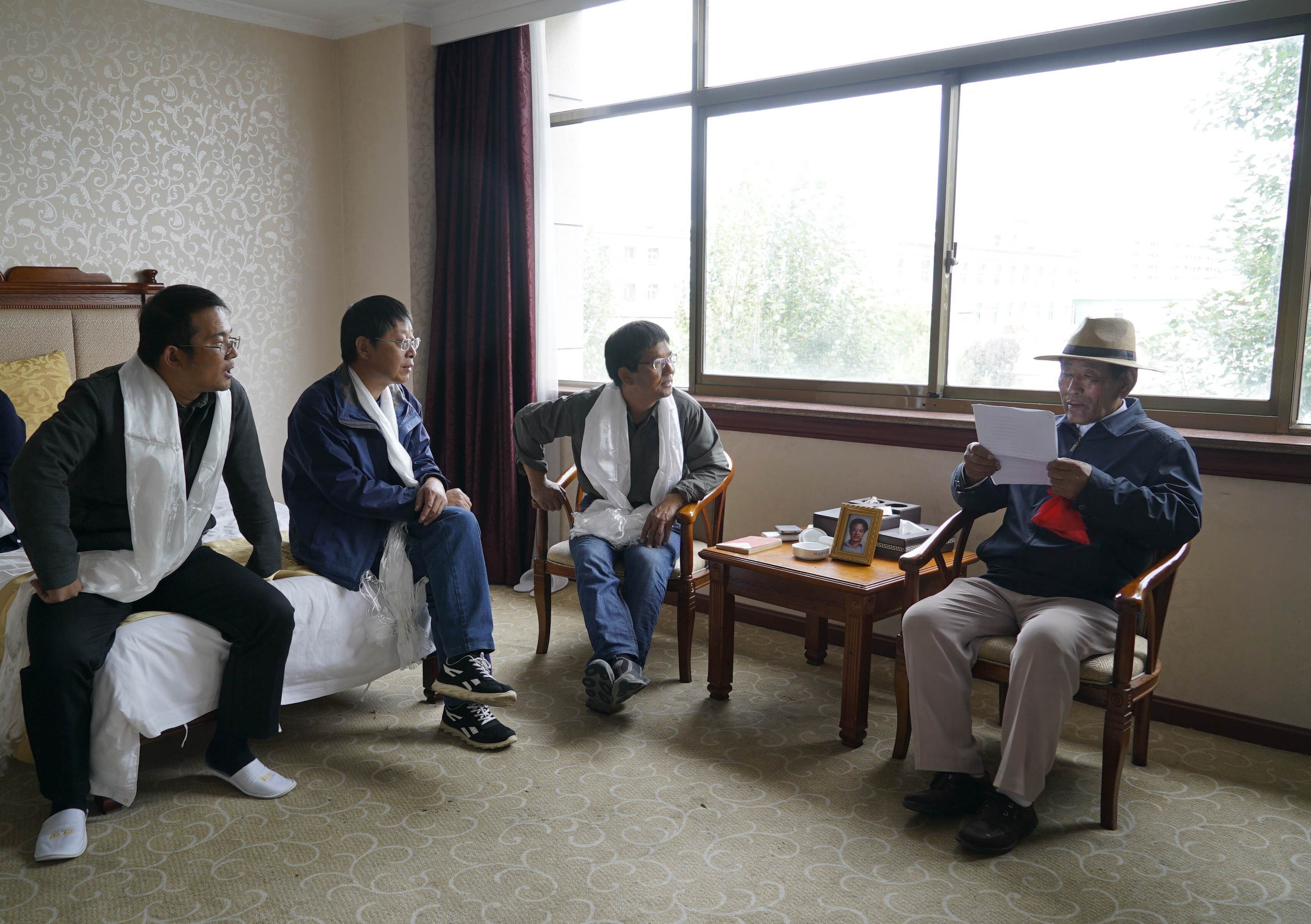 2016年8月,孔繁森同志紀念館“重走繁森之路 尋訪紅色記憶”采訪團到達拉薩后,通過組織找到了阿里地區政協原副主席班登群培,他為我們講述了與孔繁森一起共事的那段經歷。他曾在阿里地區措勤縣擔任縣委書記,孔繁森時任中共阿里地委書記。小時候是個放羊娃、文化水平不高的他,在黨的培養教育下,通過自己的努力,一步一個腳印地走上了領導崗位。