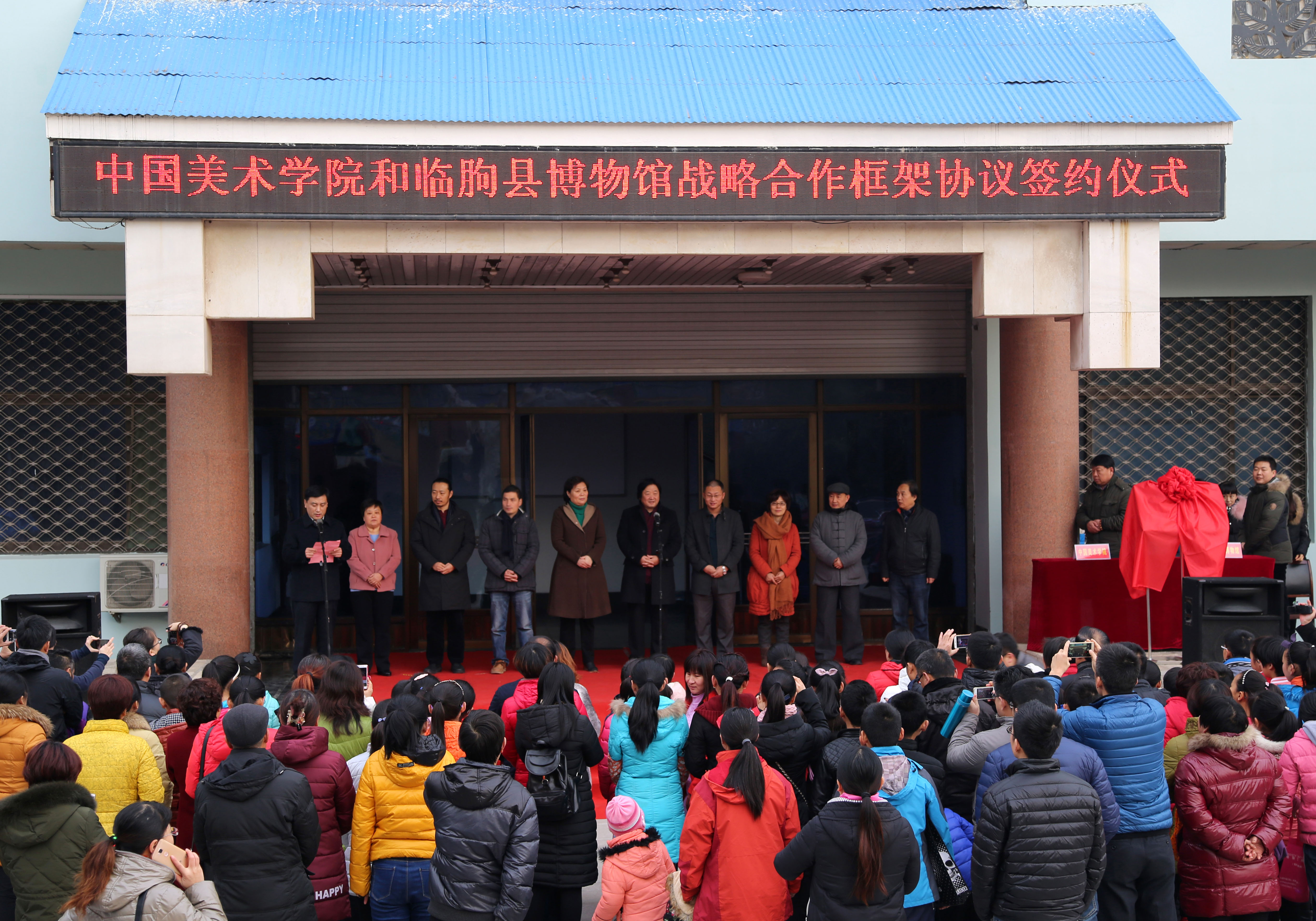近日,臨朐縣博物館與中國美術(shù)學(xué)院戰(zhàn)略合作框架協(xié)議簽約儀式在臨朐縣博物館隆重舉行。中國美術(shù)學(xué)院雕塑與公共藝術(shù)學(xué)院院長楊奇瑞,濰坊市文物局局長劉允泉,中共臨朐縣委常委、宣傳部部長郭寶花出席簽約儀式并分別致辭。臨朐縣文化廣電新聞出版局局長楊維政主持簽約儀式,中國美術(shù)學(xué)院的其他教授和研究生,縣博物館全體干部職工,縣直部分學(xué)校的師生、家長參加簽約儀式。簽約儀式上楊奇瑞院長、郭寶花部長為中國美術(shù)學(xué)院教學(xué)實(shí)習(xí)基地揭牌,楊奇瑞院長、衣同娟館長簽署戰(zhàn)略合作框架協(xié)議。