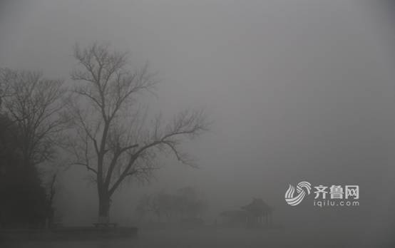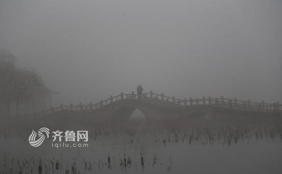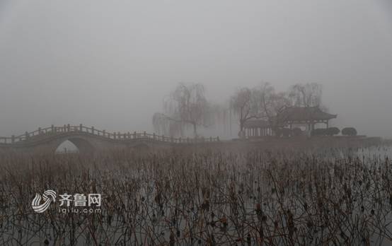 在連續(xù)幾日的霧霾天氣影響下,大氣能見(jiàn)度降低,天空灰白,濟(jì)南大明湖風(fēng)景區(qū)如一幅水墨畫(huà)。齊魯網(wǎng)