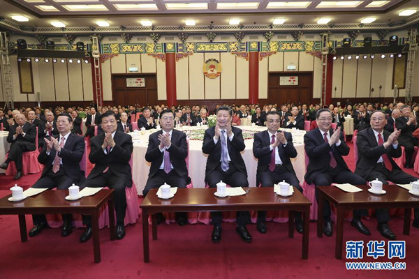 2016年12月30日,全國政協(xié)在北京舉行新年茶話會(huì)。黨和國家領(lǐng)導(dǎo)人習(xí)近平、李克強(qiáng)、張德江、俞正聲、劉云山、王岐山、張高麗出席茶話會(huì)并觀看演出。新華社記者 鞠鵬 攝