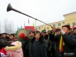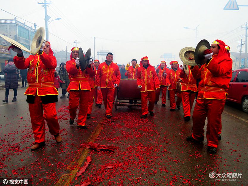 上午9時,曹縣桃源集村以街為單位,每街集合祭奠隊伍,由幾十位青壯年抬著精心捏制、塑造的花供供品,列隊前往火神廟彩棚。