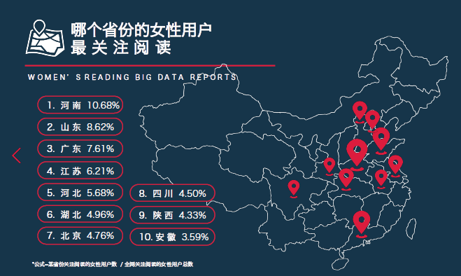 在全國各個省市自治區中,哪里的女性更關注閱讀呢?答案是河南,山東與廣東緊隨其后,北京排名第七,上海未上榜。對比紙書購買的金額,對于北京上海的女性來說,她們雖然在購書的金額上遠高于其他地區,但花在閱讀上的時間和二線城市的女性相比并沒有太大的差距。像河南、山東、江蘇等地的女性,在閱讀習慣上反倒更接近于發達國家:她們更喜歡閱讀文學類作品,不同年齡段的女性閱讀差異較小。