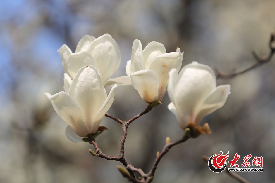 百花公園內,六百株玉蘭迫不及待地傳遞春的訊息,花開爛漫、滿樹清香。大眾網記者 王長坤 實習生 孫明悅 攝