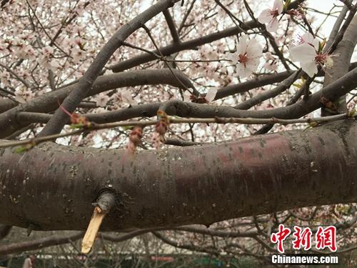 圖為北京玉淵潭公園的櫻花,花瓣有明顯缺口。湯琪攝
