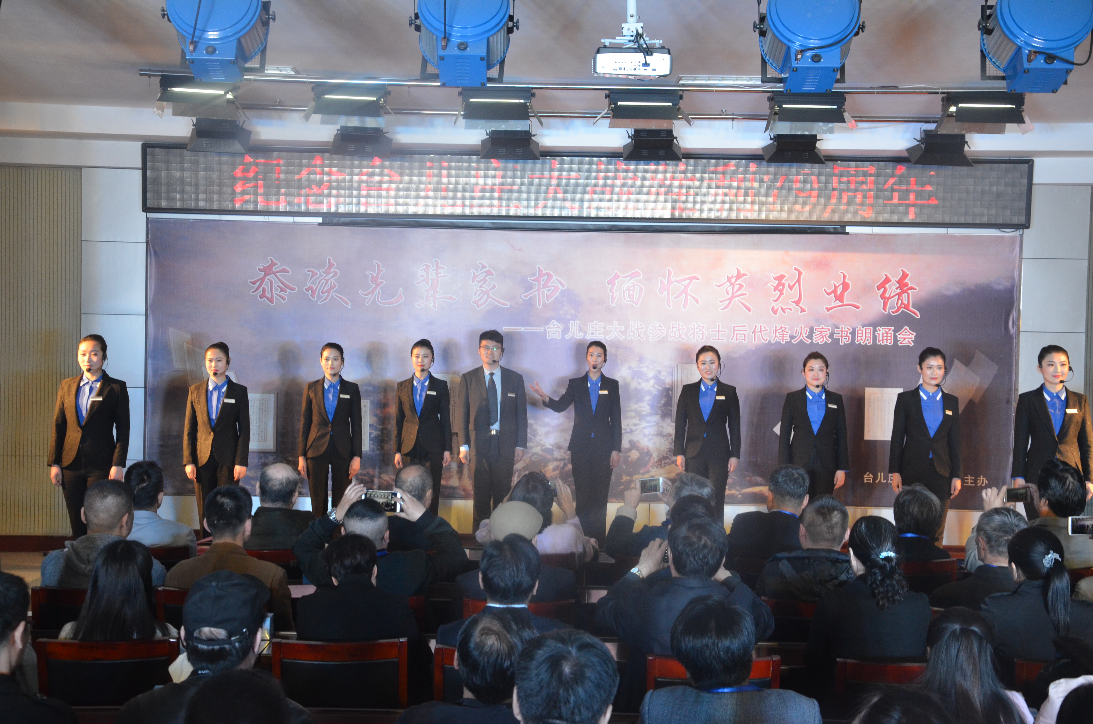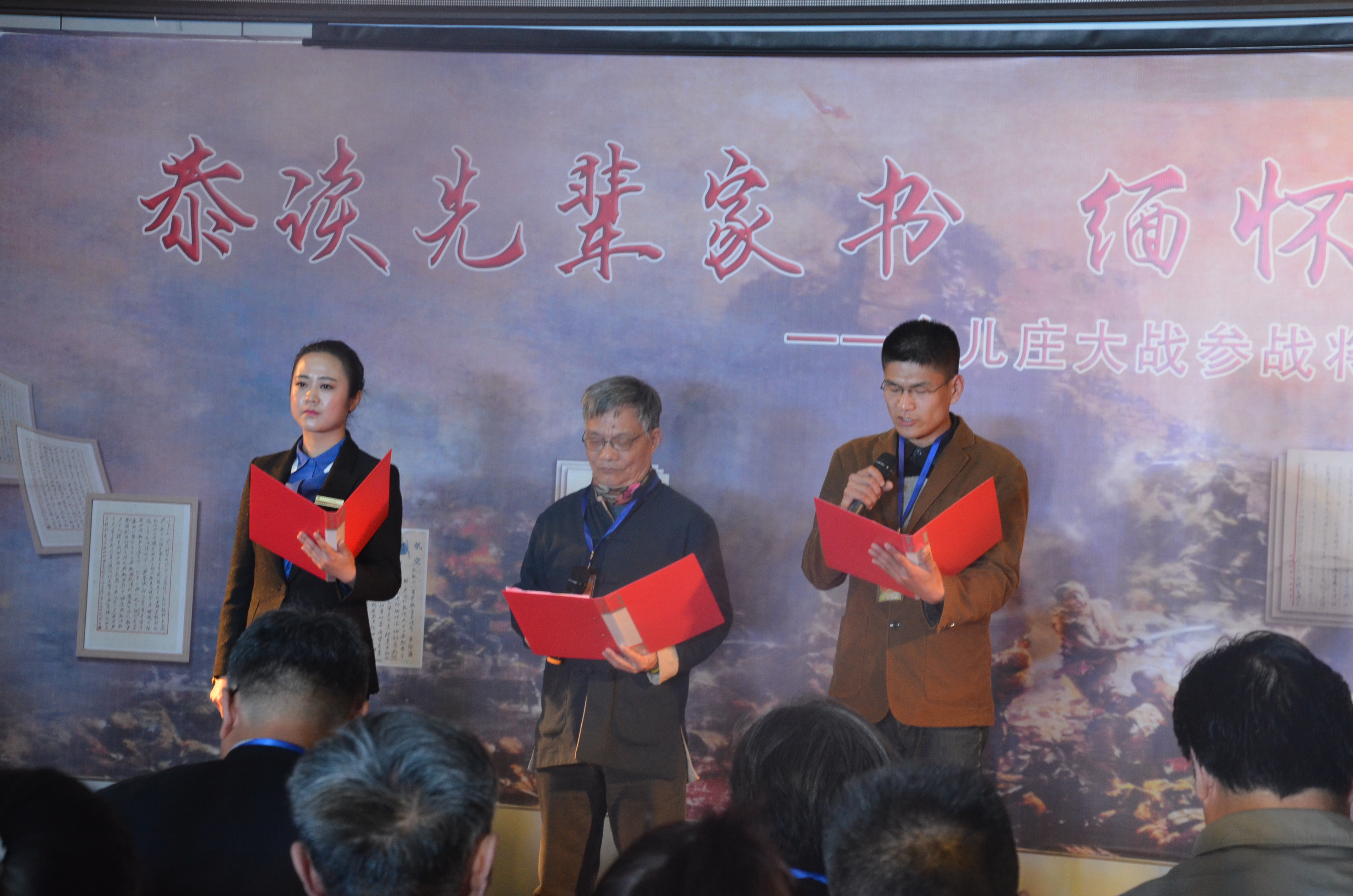 臺兒莊大戰紀念館民族大講堂內舉辦“恭讀先輩家書,緬懷英烈業績”——臺兒莊大戰參戰將士后代烽火家書朗誦會。