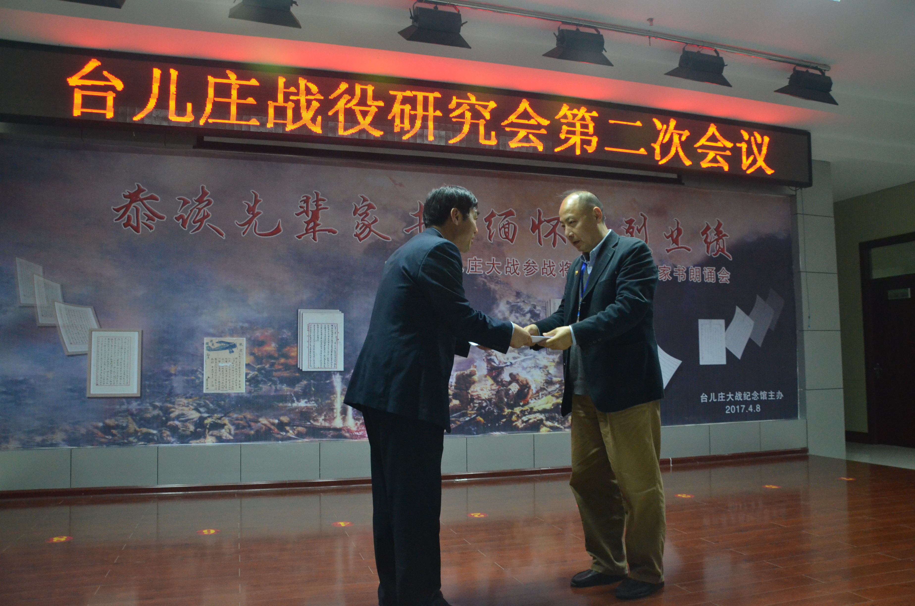 獨立四十四旅旅長吳鵬舉之孫吳項文、吳項林向臺兒莊戰役研究會捐款10萬元