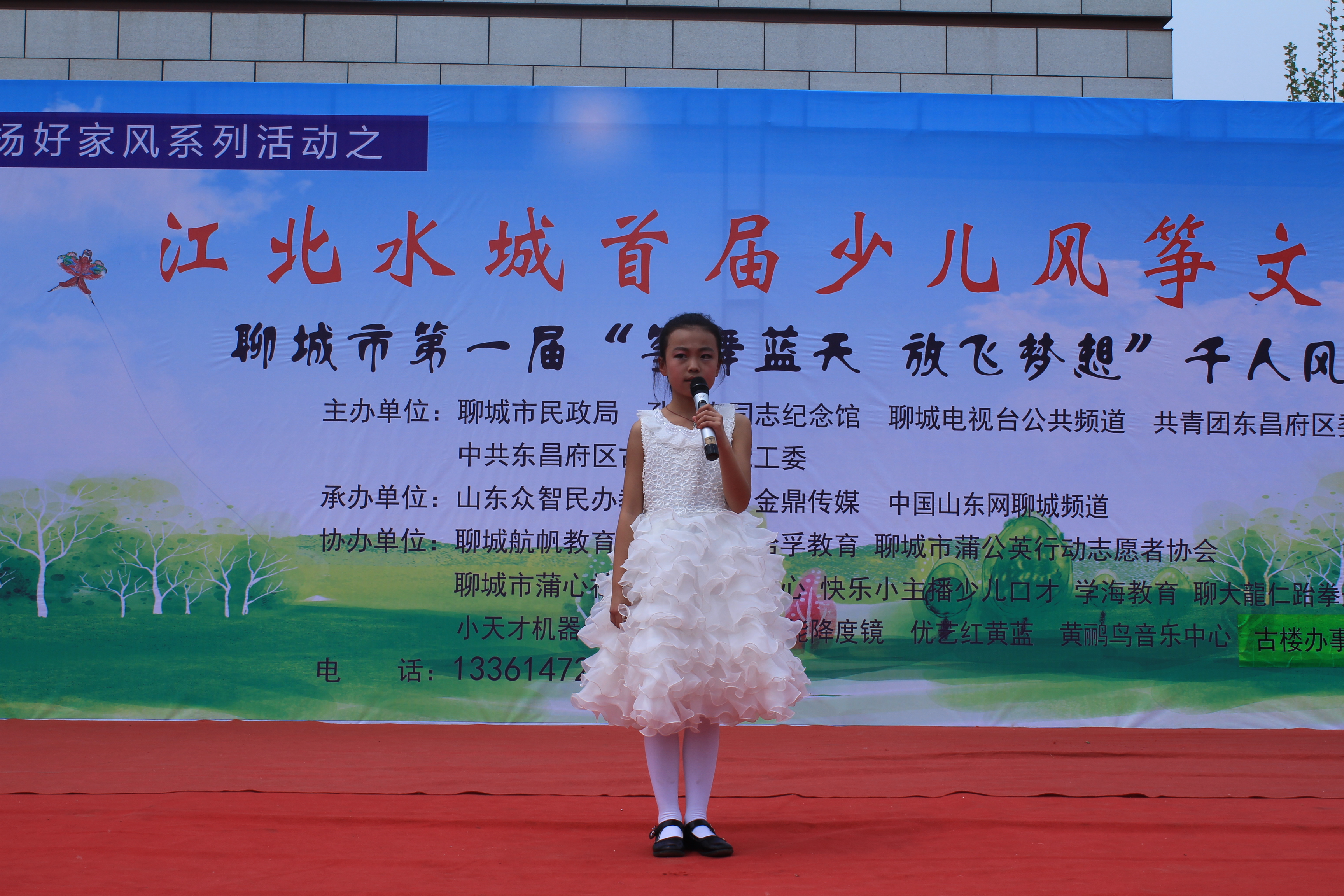 風箏作為民俗文化之一,在我國有著悠久的歷史。值此春暖花開之際,為了給孩子們提供一個展示才華、張揚個性、放飛夢想的舞臺,2017年4月15日,弘揚好家風系列活動之江北水城首屆少兒風箏文化節暨聊城市第一屆“箏舞藍天 放飛夢想”千人風箏文化節在孔繁森同志紀念館隆重開幕。活動由聊城市民政局、孔繁森同志紀念館、聊城電視臺公共頻道、共青團東昌府區委、東昌府區古樓街道黨工委聯合主辦。