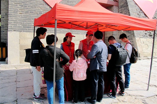 為切實做好節日慶祝活動,博物館還開展了豐富的活動。一是在院內及城墻上懸掛龍旗、大紅燈籠,擺放鮮花,厚載門小廣場組擺大型花壇,營造了濃厚的節日氣氛;二是在仁安門舉辦慶“五一”泰山平安文化旅游商品展活動,讓游客欣賞并品嘗到泰山煎餅、泰山女兒茶、泰山玉、肥城桃木等多個具有泰山地方特色的旅游商品;三是結合景區正在開展的“春雨行動”,由志愿者服務團隊在岱廟南門設立咨詢臺,義務向游客提供泰山相關旅游咨詢,發放岱廟旅游宣傳冊;四是在配天門舉辦了《水墨泰山——中國實力畫家泰山寫生作品展》,共展出王林春、鄒鴻等書畫家作品36幅,這些作品用濃墨重彩向游客描述了不一樣的泰山。