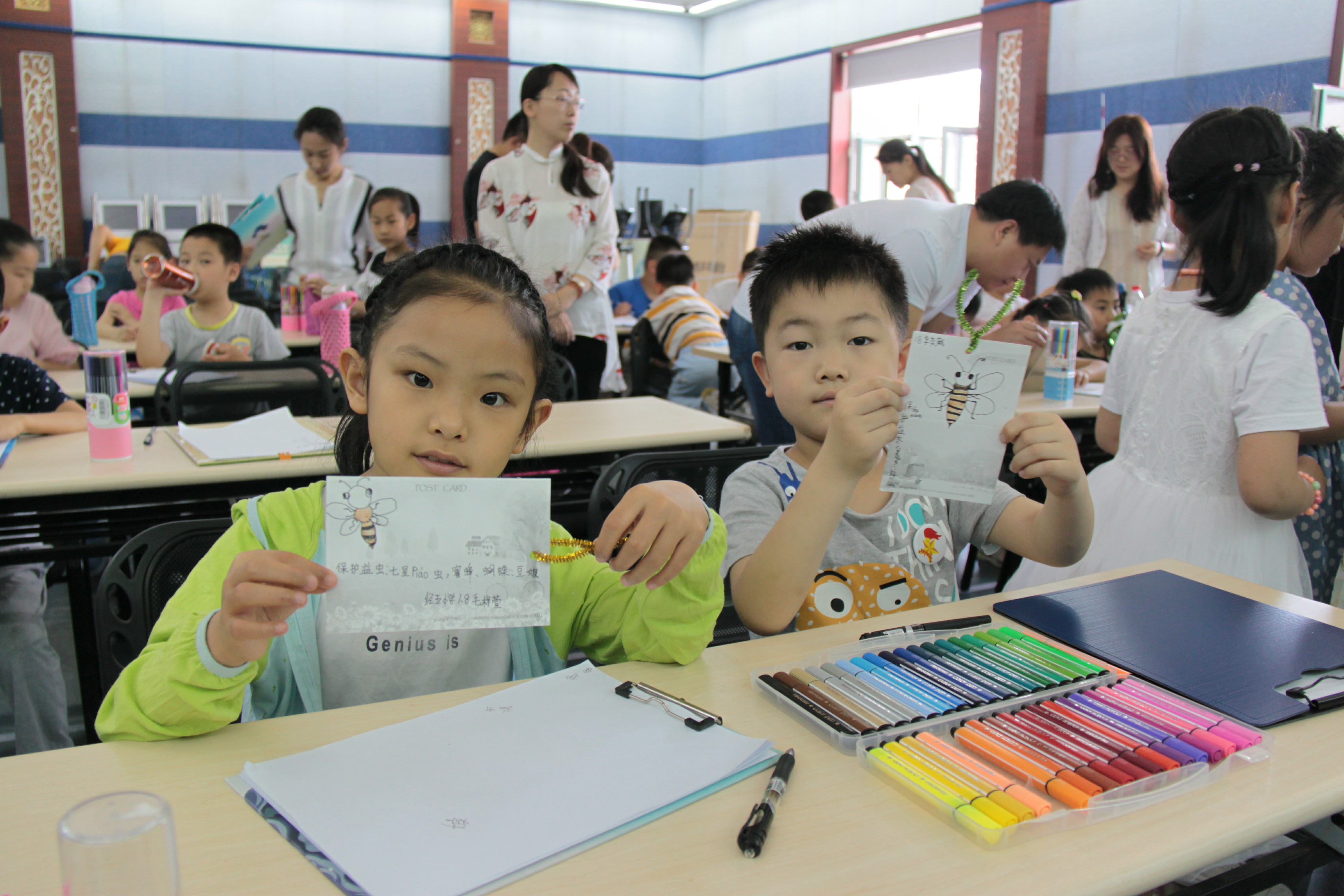 費老師的講解專業有親和力,同學們聽的聚精會神,明白了昆蟲中有很多對人類有益的種類,在大自然中各司其職,比如說蜜蜂為花朵傳授花粉,蜻蜓的幼蟲可以吃掉蚊子的幼蟲,防止疾病傳染等等科普知識。費老師講授完知識后,又手把手帶領同學們制作“益蟲保護卡片”,在一雙雙小手的勾畫下,一個個個性鮮明的小蜜蜂躍然紙上,同時在卡片上書寫了昆蟲中益蟲的種類和保護標語。