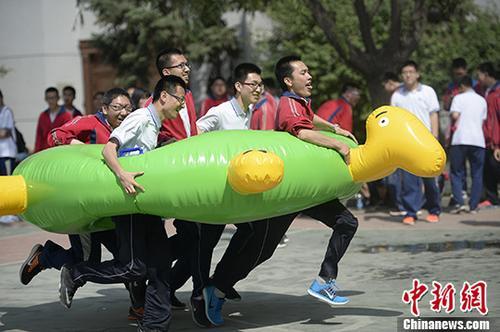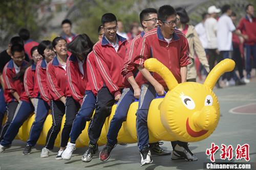 資料圖:高三學(xué)生參與趣味運(yùn)動(dòng)會(huì)減壓。 中新社記者 劉文華 攝