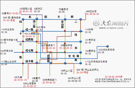 39、k51、k55、82、120和夜605路共6條線路末班車發(fā)車分季節(jié)運(yùn)行。