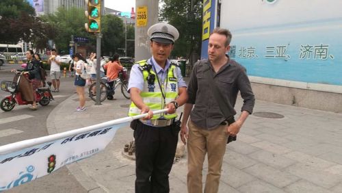 6月10日下午,歷下大隊民警在濼文路北口執勤時,突然來了一位金發碧眼的外國人主動要求參與交通志愿服務。經民警了解,這位外國友人名叫李森來自美國,在山東管理學院從事外教工作,在濟南已經居住6年了,最近看到濟南各個路口通過民警和志愿者嚴格管理,感覺路口的交通秩序有了很大的提高。李森作為長期生活在濟南的外國人非常感動,因此主動提出自己也要體驗一下交通志愿者的工作。民警首先對李森表示感謝,為其介紹了路口的管理措施,經過簡單的培訓后,李森在路口協助民警體驗了半個小時的交通志愿者工作,并對濟南交警辛勤付出給予了高度評價。 齊魯晚報記者 張泰來 通訊員 韓燁