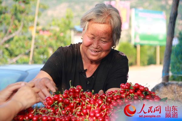 今年又是一個(gè)豐收年,山東沂源燕崖鎮(zhèn)的大櫻桃以其品質(zhì)贏得市場(chǎng),成為“搶手貨”。圖為雙泉村69歲的杜慶榮大娘在分揀大櫻桃。(攝影 宋翠)