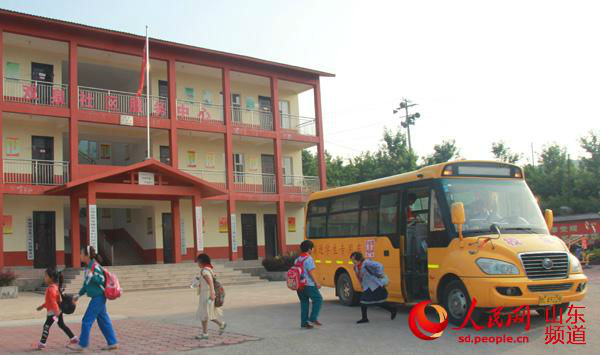 夕陽(yáng)西下,一輛黃色大鼻子校車駛上山來(lái),停在了雙泉村村委門口,一群背著書包的孩子魚貫而下,然后雀躍著奔向家里。