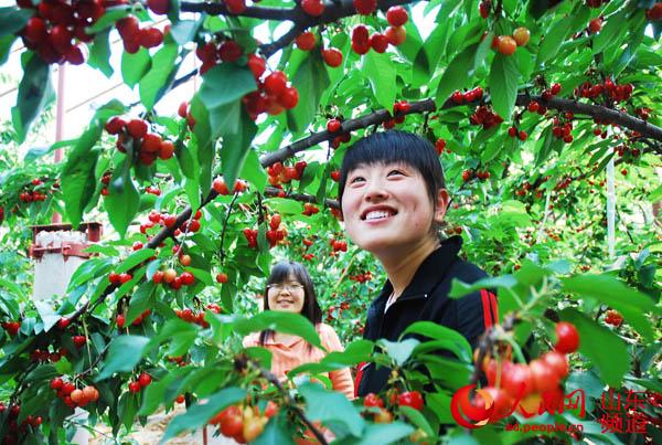 沂源燕崖的大櫻桃還吸引了來(lái)自全國(guó)各地的游客前來(lái)采摘。(資料圖)