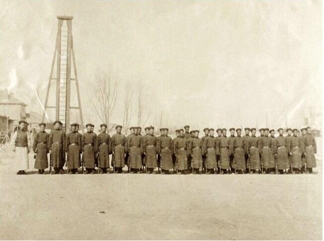 1894年,營口,為保護歐美人員的美英軍艦的官兵。