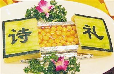 “食不厭精,膾不厭細”,常被作為飲食名言相傳。孔府菜起源于宋仁宗寶元年間,用于接待貴賓、上任、生辰家日、婚喪喜壽時特備。孔府菜宴會飲食中有不少掌故,“孔府一品鍋”,因衍圣公為當朝一品官而得名。孔府的另一類菜肴是“家常菜”,從米粥、煎餅、咸菜、豆腐到豆芽、香椿、雞蛋、茄子,這些來自民間的常食小吃,經過孔府廚師的精巧制作,成為孔府的獨特菜品,其原則是“精菜細作,細菜糖炒”。