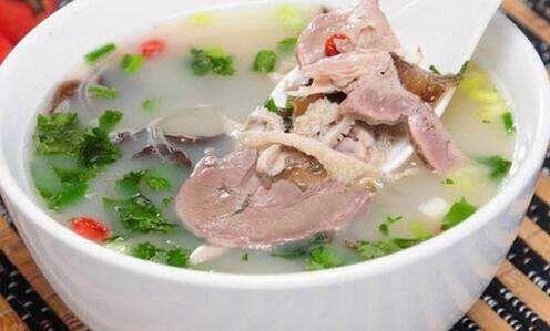 最早創于1807年,由徐、竇、周三家聯手創建,取名為“三義春”羊肉館。有著近200年歷史的單縣羊肉湯,以其“色白似奶,水脂交融,質地純凈,鮮而不膻,香而不膩,爛而不黏”的獨特風格,被載入中華名食譜。民間有云:“來到菏澤牡丹城,不品單縣羊肉湯,等于白來菏澤走一樁!”羊肉湯品種各異,肥的油泛脂溢,瘦的白中透紅。天花湯健腦明目,口條湯壯身補血,肚絲湯可細嚼慢飲,各具風味。