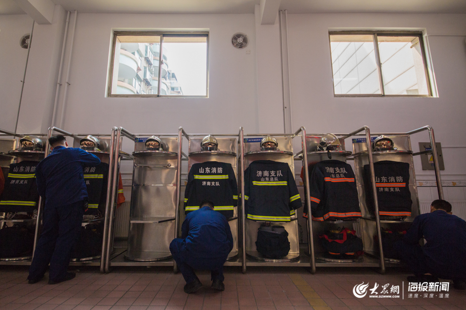 大眾網·海報新聞濟南4月13日訊(記者 張珈瑋 畢勝)12日清晨,街上的灑水車剛剛走遠,院子里的哨聲把人從夢鄉當中一把拉了起來。不到一分鐘,濟南市消防救援支隊歷下區大隊泉城廣場中隊的大院里已經集合完畢,“一二一,一二一”早操的口號回響在附近的馬路上。12日一早,大眾網·海報新聞記者來到這里探訪消防員的日常工作,記錄了他們平日里的辛苦點滴。