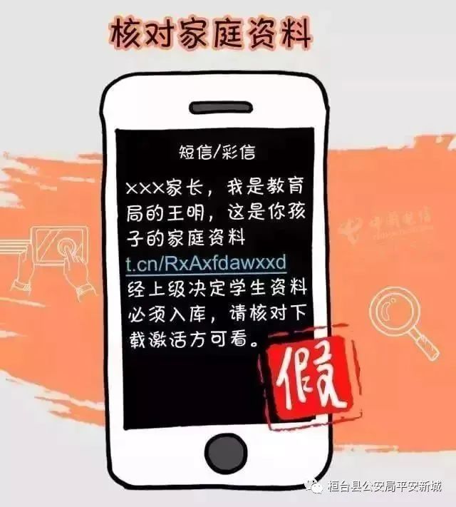 應對方法:接到此類短信的家長應該及時聯系孩子班主任或學校負責人,確認信息的真實性,不要輕易點擊不明鏈接。