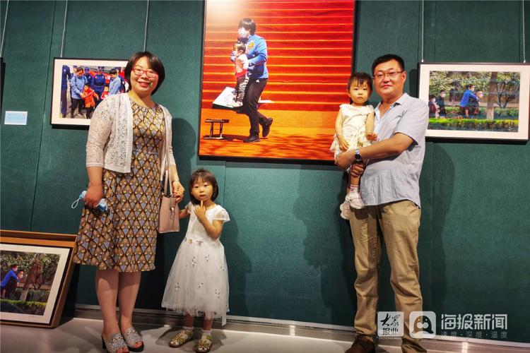 6月13日,山東大學齊魯醫院援助湖北醫療隊護士蒲林哲全家在照片前合影。楊振勇 攝