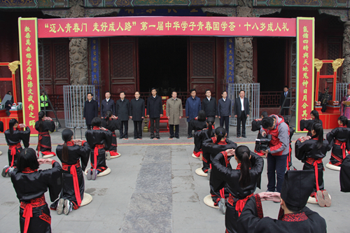 成人禮即冠笄之禮,男子行冠禮,女子行笄禮。是中華民族傳統(tǒng)的成人禮儀,以提示行冠笄禮者的青年男女成為正式跨入社會的成年人,擔當起家庭和社會的責任。曲阜市響應山東省旅游局、中國青年報、中國旅行社“感恩自強,快樂成長”中華成人之旅修學活動的號召,在曲阜孔廟大成殿舉行成人禮儀式,修習中國傳統(tǒng)文化,提升精神素養(yǎng)。其儀式主要分三項:第一項,行集體加冠笄禮;第二項,向冠笄禮成人學子頒發(fā)《成人禮證書》;第三項,集體向孔子像行五拜禮。
