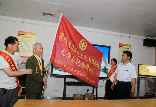 2016年6月17日,由濟南市紅十字會道德模范志愿者服務隊和濟南市天橋區澤岸志愿服務愛心先鋒隊組成的愛心志愿服務隊到我館開展《走近聊城,走近孔繁森》愛心志愿服務活動。曾三次受毛澤東主席親切接見、在戰場上與日軍拼刺刀的戰斗英雄袁永福老前輩,中國好人、全國無償獻血狀元獲得者、濟南市紅十字志愿者服務隊隊長房澤岸同志,全國道德模范、山東省道德模范獲得者、濟南市紅十字志愿者服務隊副隊長詹春芳同志,濟南好人、山東好人獲得者、濟南市紅十字志愿者服務隊秘書長房澤安等十余位道德模范以及社會愛心人士、大學生志愿者共20余人參加了本次活動。