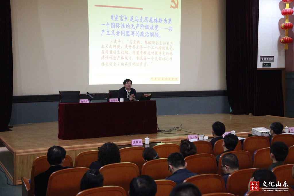 魏恩政以“《共產黨宣言》與共產黨人的信仰和使命”為題為培訓班作首場輔導報告,報告從《共產黨宣言》的產生及對我國近現代革命的影響、《共產黨宣言》的基本內容、《共產黨宣言》規定了中國特色社會主義的一系列基本原則、《共產黨宣言》給了我們哪些永恒的精神財富等四個方面,對《共產黨宣言》的歷史地位、現實意義、對我國近現代革命和建設的影響等進行了全面解讀和深刻闡述,對省直文化系統黨員干部進行了一次生動深刻的黨性教育,進一步加深了對共產黨宣言的認識和理解,激發了對馬克思主義基本原理和經典著作的學習熱情。