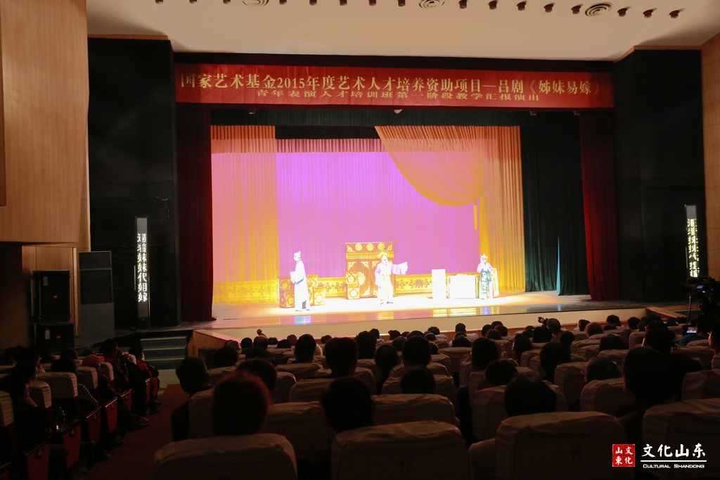 國(guó)家藝術(shù)基金2015年度藝術(shù)人才培養(yǎng)資助項(xiàng)目——呂劇《姊妹易嫁》青年表演人才培訓(xùn)班于2016年4月10日至11日在濟(jì)南百花劇院舉行第一階段教學(xué)匯報(bào)演出。